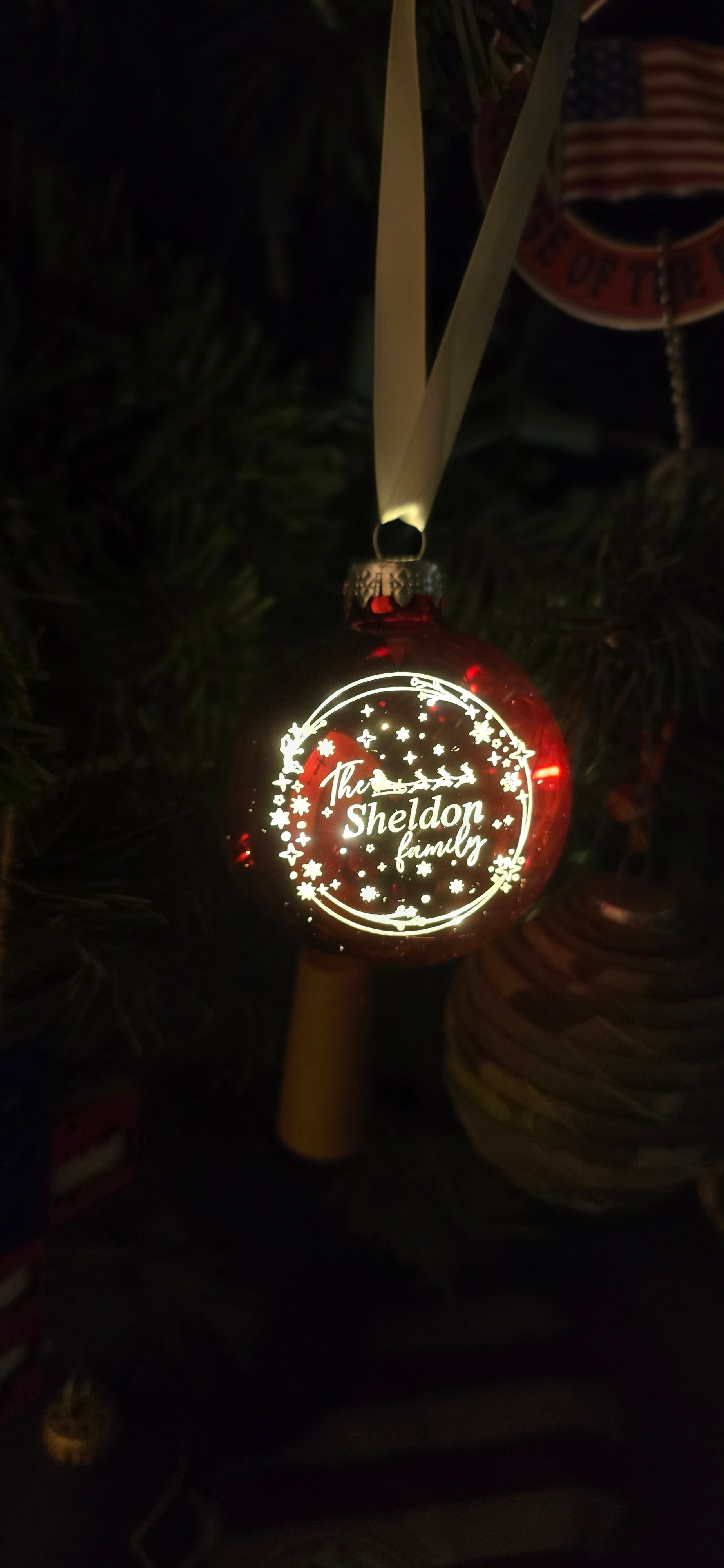 Engraved Glass Bauble Ornament with Lights